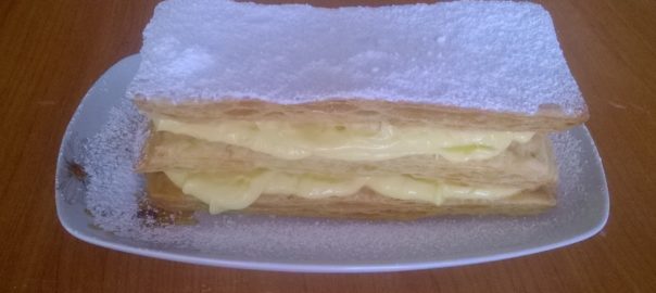 Υλικά για 3 μεγάλα κομμάτια: 1 χειροποίητο φύλλο σφολιάτα 450-500 γρ. Για την κρέμα: 1 λίτρο γάλα 3,5% λιπαρά 100 γρ. κορν φλάουρ 6 κρόκους 270 γρ. ζάχαρη 2 βανίλιες 3 κ.σ.Read More…