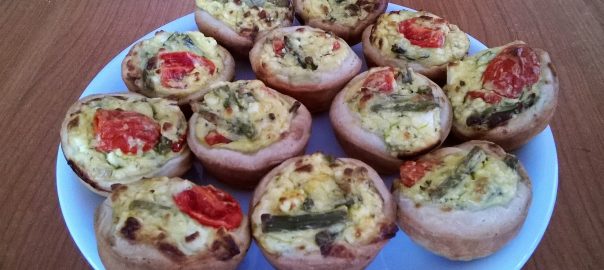 Ταρτάκια με φέτα, σπαράγγια και ντοματίνια